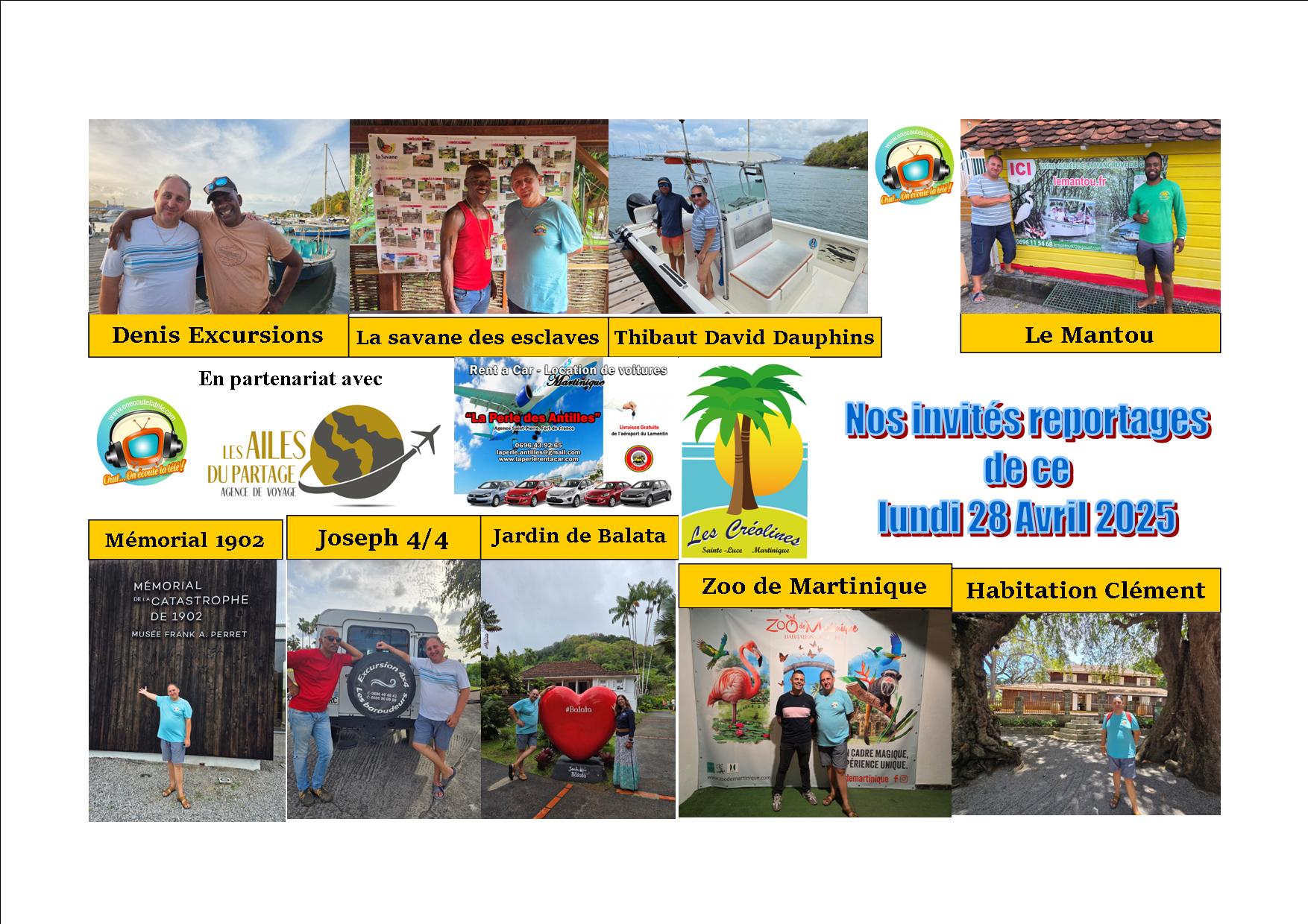une émission haute en couleurs, un véritable voyage auditif auquel on vous invite pour une expérience inoubliable le tout en partenariat avec l’agence de voyages “les ailes du partage”, la résidence “les créolines” à Sainte Luce et la location de voitures “la perle des Antilles Rent a car”