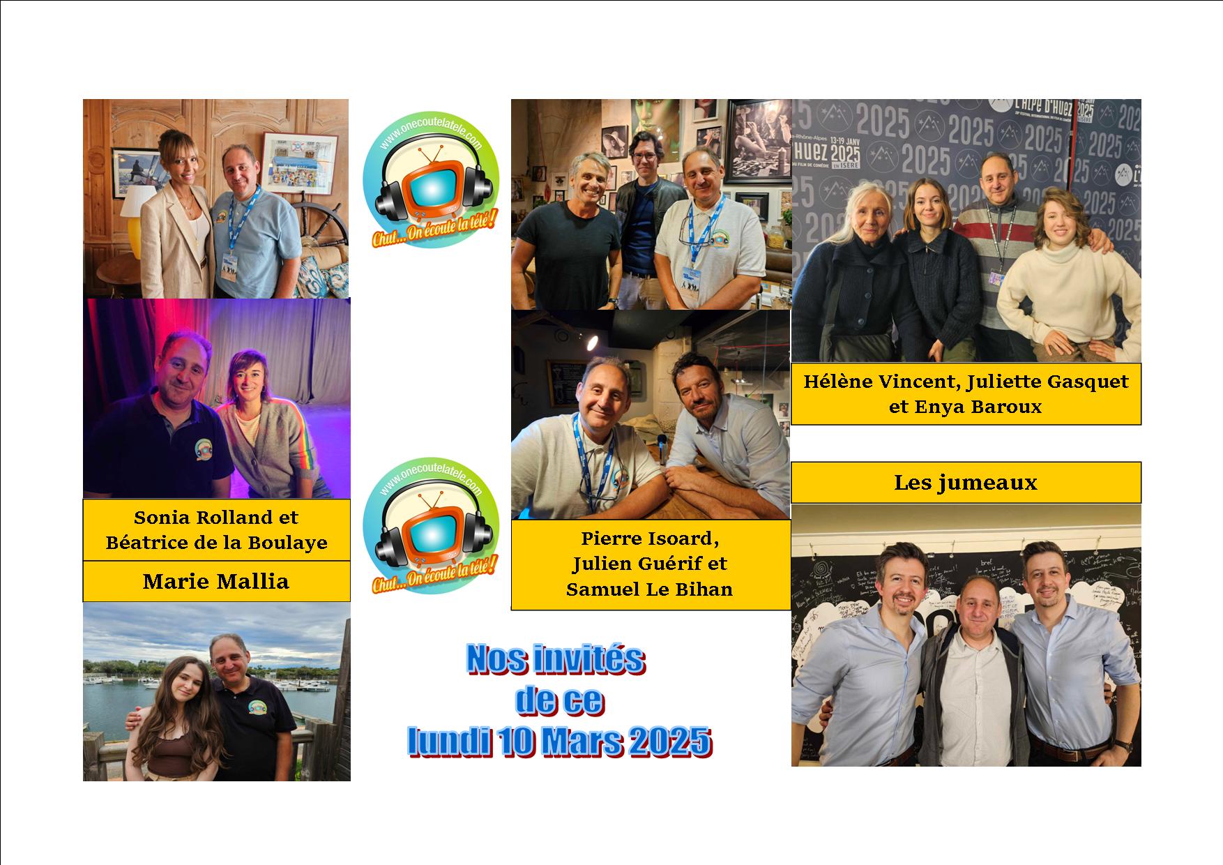 Chut on écoute la télé l’hebdo: le podcast de ce lundi 10 Mars avec Enya Baroux, Hélène Vincent, Juliette Gasquet, Marie Mallia, Samuel Le Bihan, les Jumeaux, Sonia Rolland et Béatrice de la Boulaye