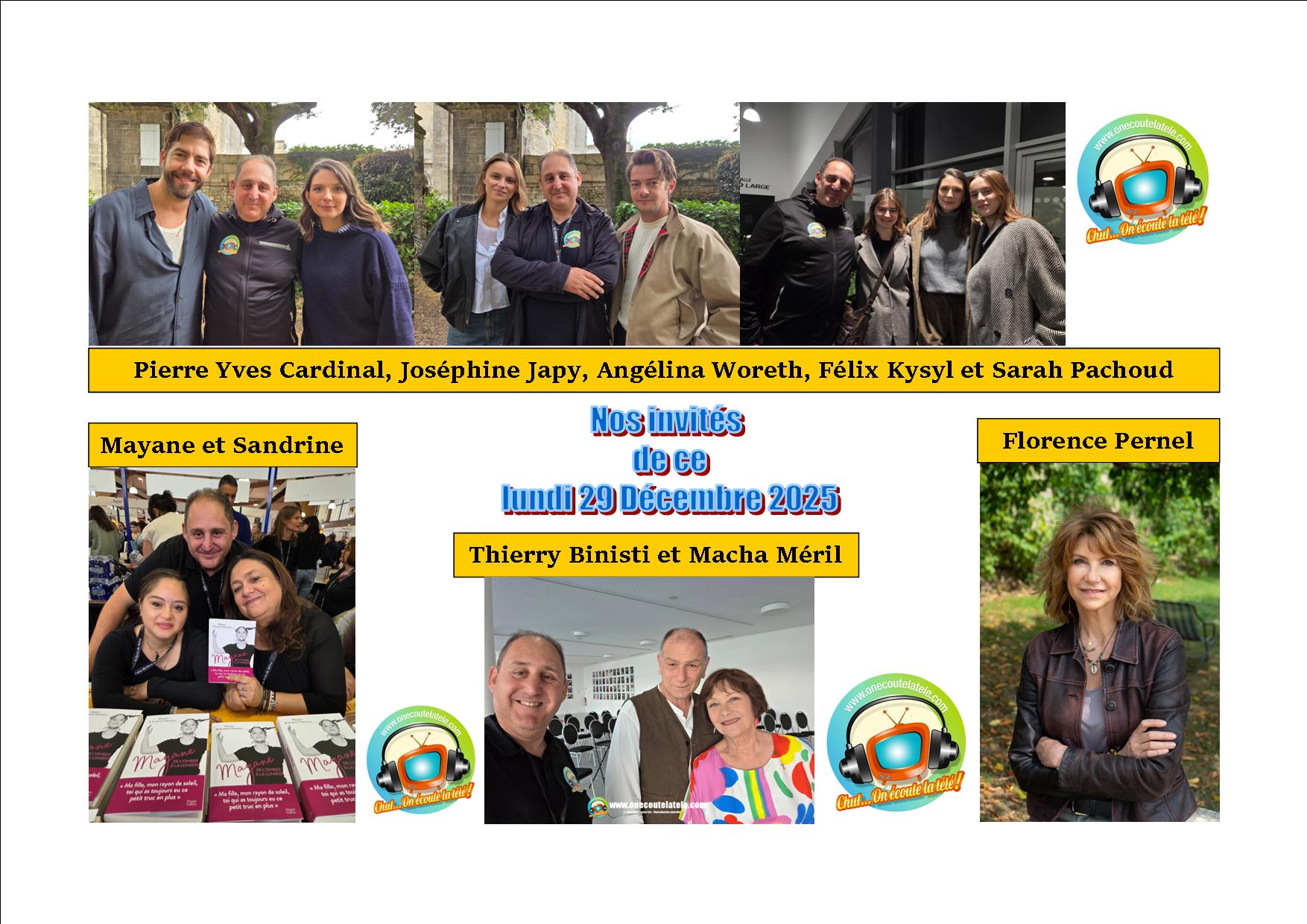 Chut on écoute la télé l’hebdo: le podcast de ce lundi 29 Décembre 2025 avec Joséphine Japy, Pierre Yves Cardinal, Angélina Woreth, Sarah Pachoud, Félix Kysyl, Macha Méril, Florence Pernel, Thierry Binisti et Mayane
