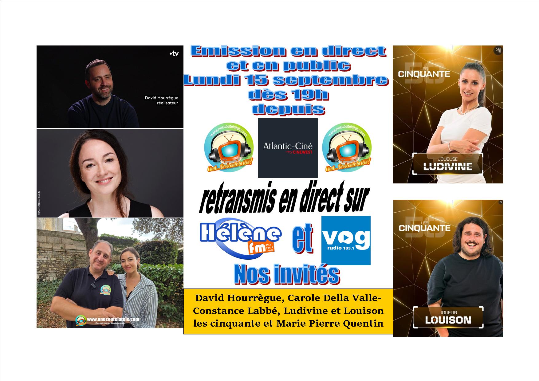 David Hourrègue, Constance Labbé, Carole Della Valle, Ludivine et Louison les cinquante pour une émission spéciale en direct et en public de l’Atlantic ciné Saintes ce soir à 19h