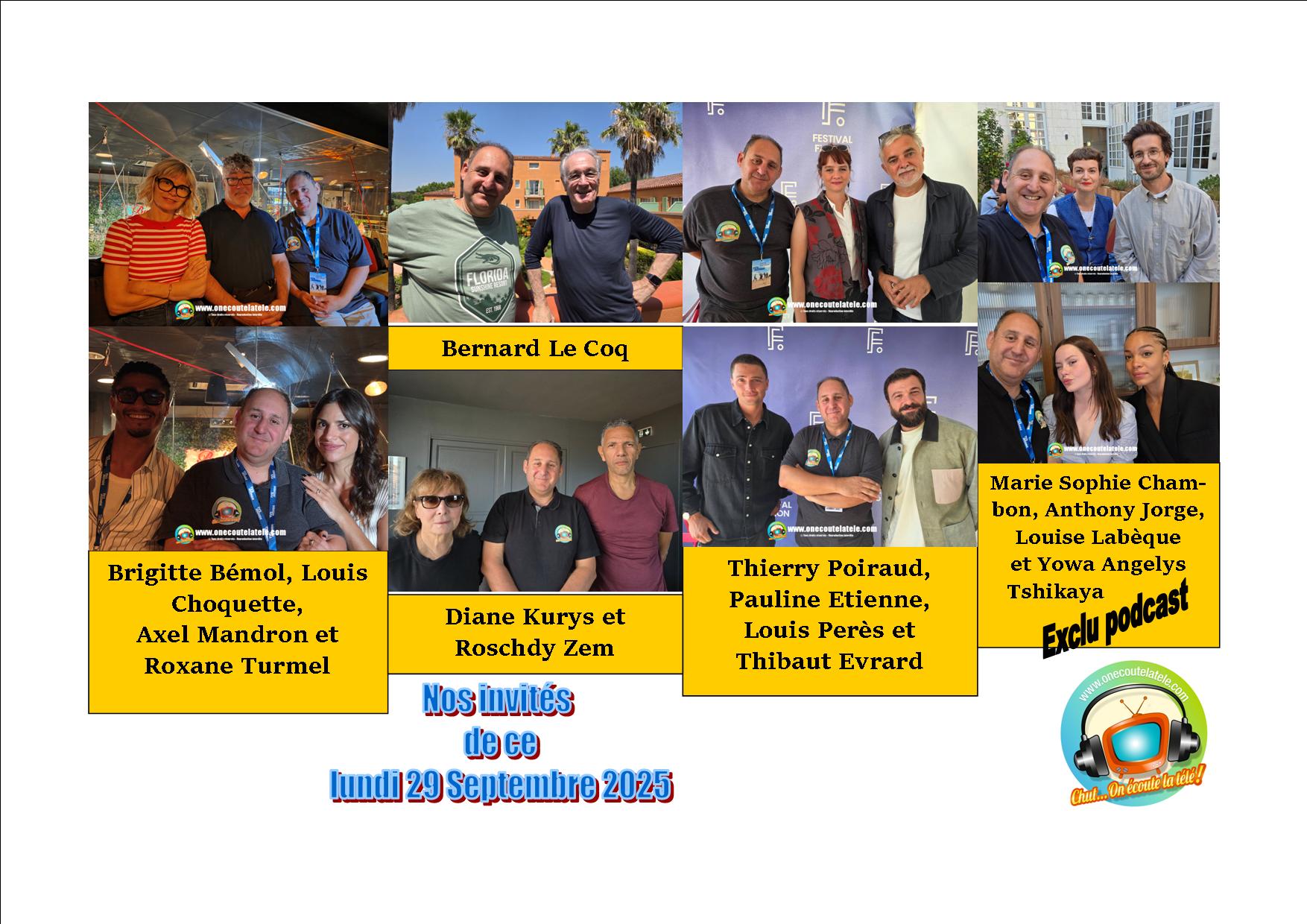 Diane Kurys, Roschdy Zem, Roxane Turmel, Axel Mandron, Louis Perès, Thibaut Evrard, Pauline Etienne, Bernard le Coq et Bistronomia ce lundi 29 Septembre dans Chut on écoute la télé