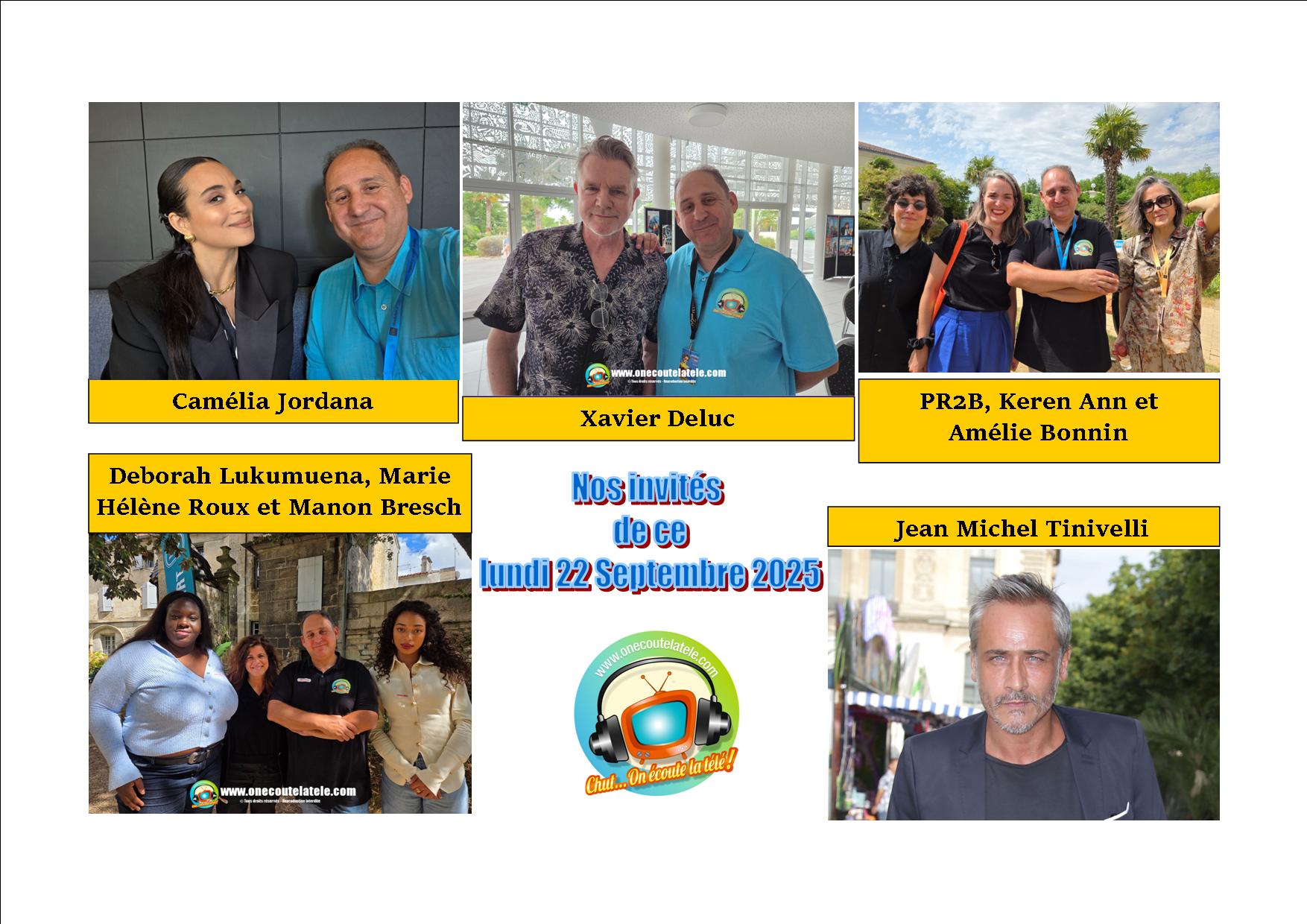 Jean Michel Tinivelli, Xavier Deluc, Camélia Jordana, PR2B, Keren Ann, Amélie Bonnin, Déborah Lukumuena, Manon Bresch et Marie Hélène Roux ce lundi 22 Septembre dans Chut on écoute la télé