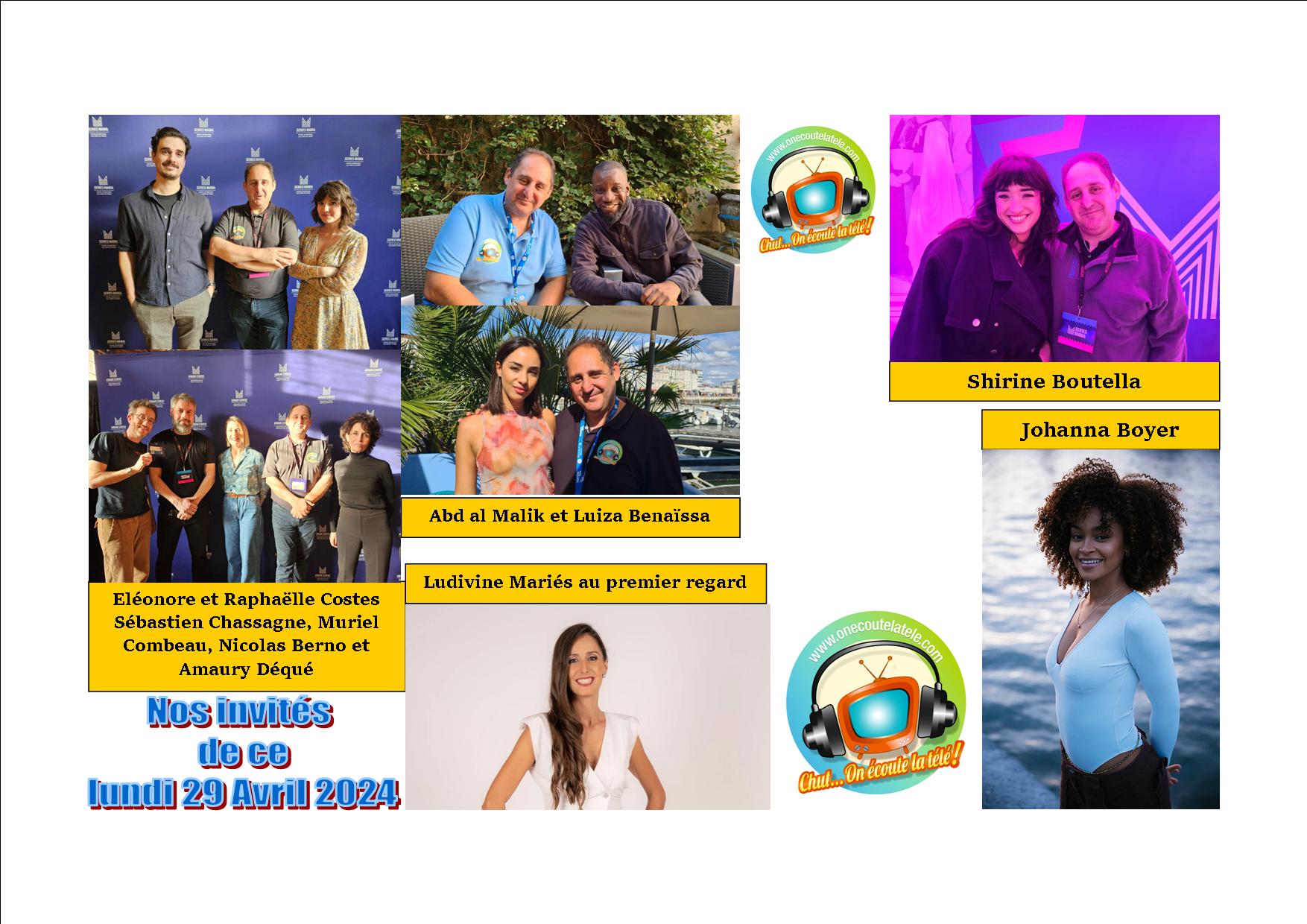 Johanna Boyer, L’équipe de “Bouchon”, Abd Al Malik, Luiza Benaïssa, Shirine Boutella, et Ludivine Mariés au premier regard ce lundi 29 Avril dans Chut on écoute la télé