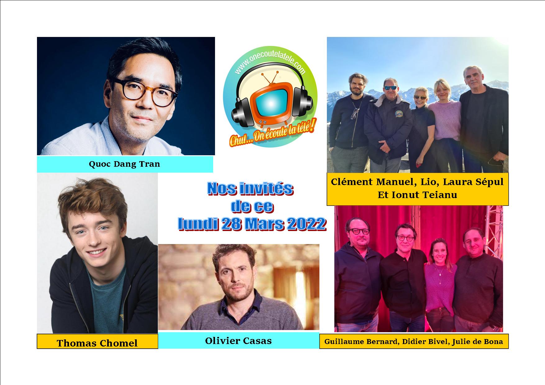 Lio, Laura Sepul, Clément Manuel, Julie de Bona, Didier Bivel, Thomas Chomel et Olivier Casas ce lundi 28 Mars dans Chut on écoute la télé