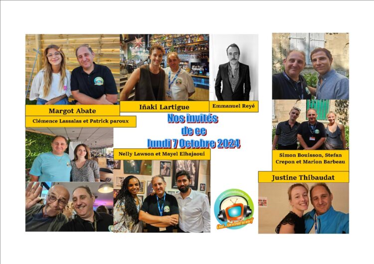 Partager la publication "Margot Abate, Iñaki Lartigue, Mayel Elhajaoui, Nelly Lawson, Patrick Paroux, Clémence Lassalas, Justine Thibaudat, l’équipe de Drône et Emmanuel Reyé ce lundi 7 Octobre dans Chut on écoute la télé"