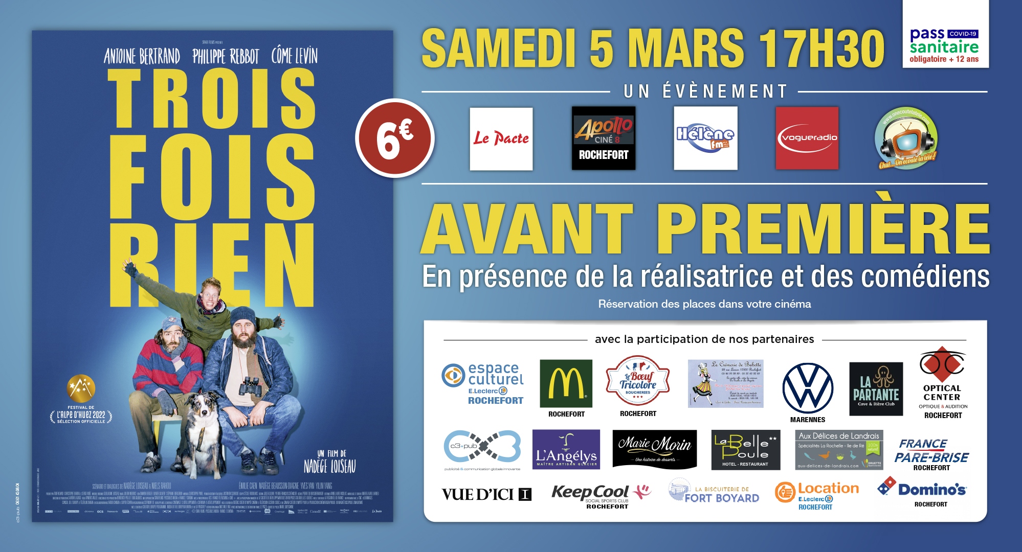 Samedi 5 mars 17h30 à l’apollo ciné 8 de Rochefort, pour réserver vos places, c’est ici https://www.apollocine8.fr/film/320399/